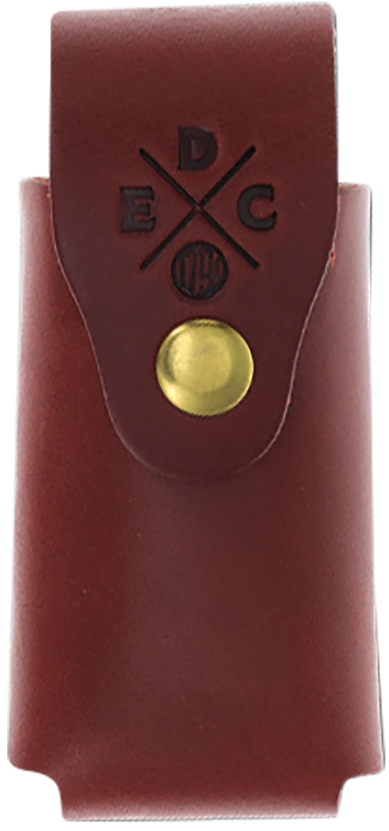 Ambidextrous outside-the-waistband (OWB) belt slide holster crafted from chestnut leather with heavy-duty construction. Designed for everyday carry (EDC) with easy slide mounting capability, measuring 6.7" in length with a 2.2" height and 6.5" width. Suitable for small frame firearms and available in a right or left-hand configuration depending on shooter preference.