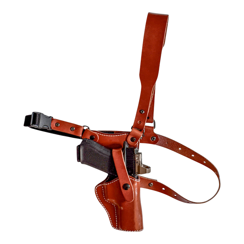 This is an optic-ready holster designed specifically for Glock 17 pistols in a right-hand draw configuration. The Size 2.1 brown leather holster accommodates firearms equipped with mounted optics, making it compatible with modern pistol setups.