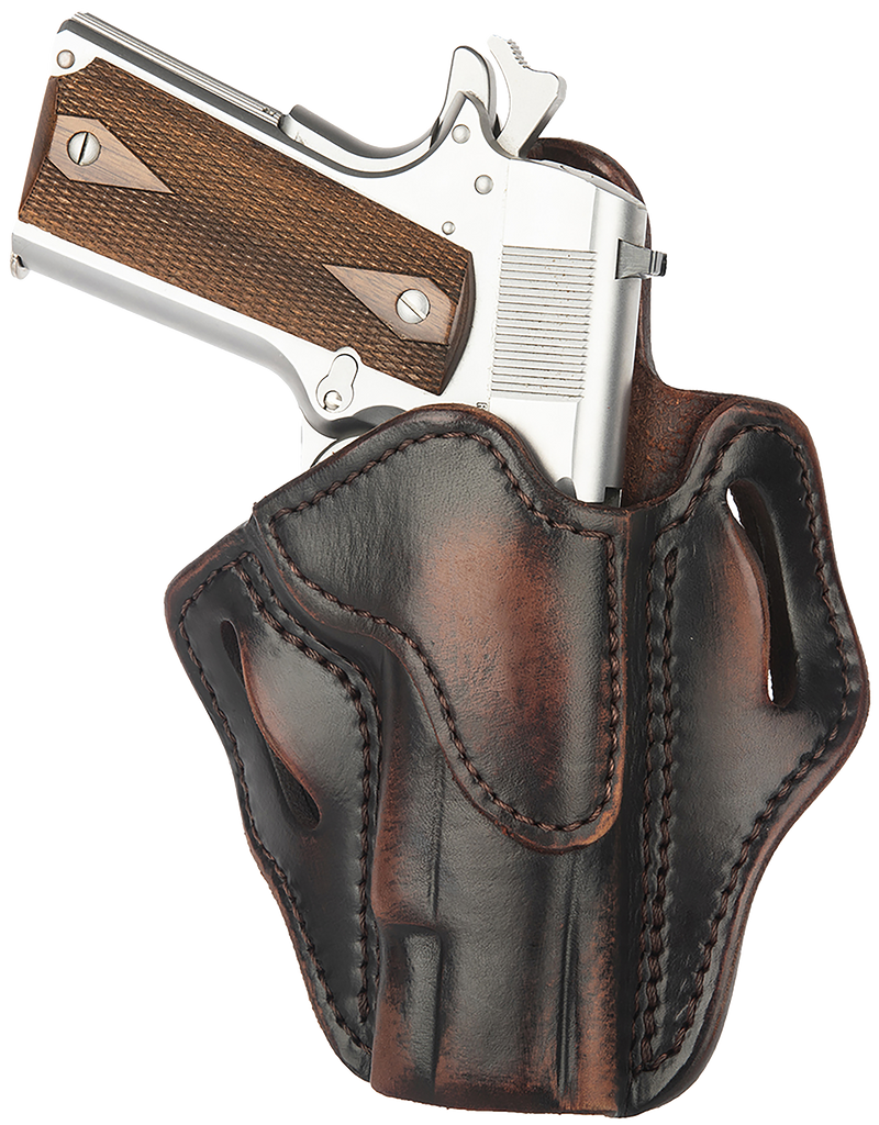 This right-hand OWB belt slide holster is designed for 4-5 inch 1911 pistols and features 1791's optic-ready design to accommodate modern sight systems. Constructed from vintage leather with excellent retention and a secure belt slide mount, it offers a comfortable carry option for standard 1911 platforms without rails.