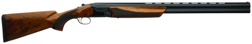 The Charles Daly 202E is a 12 Gauge over/under shotgun with a 3" chamber, 28" barrel, and 2-round capacity. Features include a fiber optic front sight, checkered walnut stock, blued finish, and comes with five interchangeable choke tubes (F, IM, M, IC, C). This sporting shotgun weighs 7.1 lbs and has an overall length of 45".
