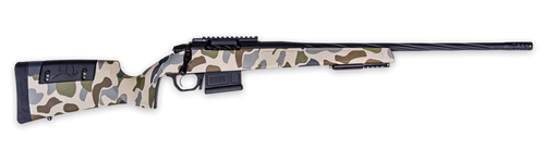 The Weatherby 307 Hush is a bolt-action rifle chambered in 7mm Rem Mag with a 26" threaded barrel and 5+1 capacity. Built on Weatherby's 2-Lug fully cylindrical Model 307 platform, it features a custom Hush camo stock, Magpul bottom metal and magazine, Peak 44 Picatinny rail for optics, and an Arca/Pic rail adapter forend. The rifle weighs 7.5 lbs, measures 45.75" overall, and is drilled and tapped for scope mounting.