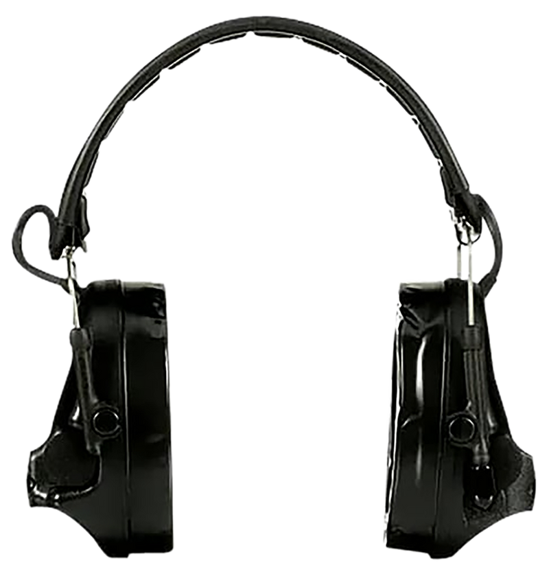Electronic ear muffs with 23 dB noise reduction rating designed to protect from hazardous steady-state and impulse noise. Features clear 2-way audio communications, environmental listening for situational awareness, and talk-through capability for face-to-face conversation. Rechargeable battery powered with over-the-head design.