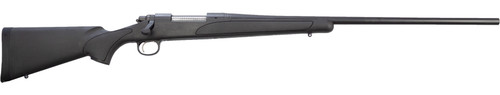 The Remington 700 ADL is a bolt-action rifle chambered in 30-06 Springfield with a 24" carbon steel barrel and matte blued finish. It features a black synthetic stock, X-Mark Pro trigger, and 4-round magazine capacity. Drilled and tapped for scope mounting, this rifle weighs approximately 7.4 lbs and is ideal for hunting applications.