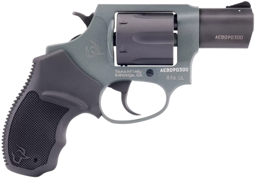 The Taurus 856 Ultra Lite is a double/single action revolver chambered in 38 Special with a 2" barrel and 6-round capacity. Featuring an alloy frame with night sights and synthetic grip, this compact revolver weighs just 15.7 oz and measures 6.55" overall, making it ideal for concealed carry. The Olive Drab Green finish with black cylinder and barrel provides a distinctive appearance.