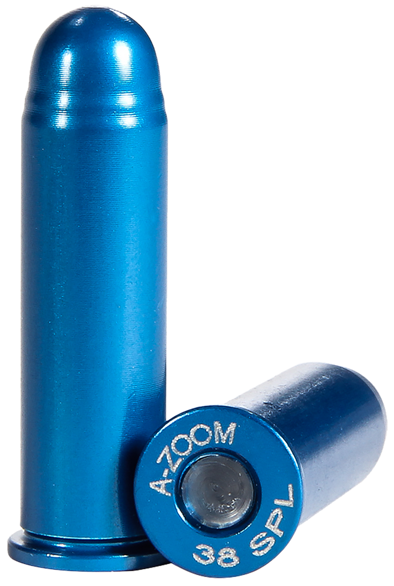 A-Zoom Blue Snap Caps are precision CNC machined aluminum training rounds designed for .38 Special revolvers. These dummy rounds are used for safety training, function testing, and dry-firing practice without damaging the firing pin. Each round features A-Zoom's durable Dead Cap, rated to withstand over 3,000 dry fires.