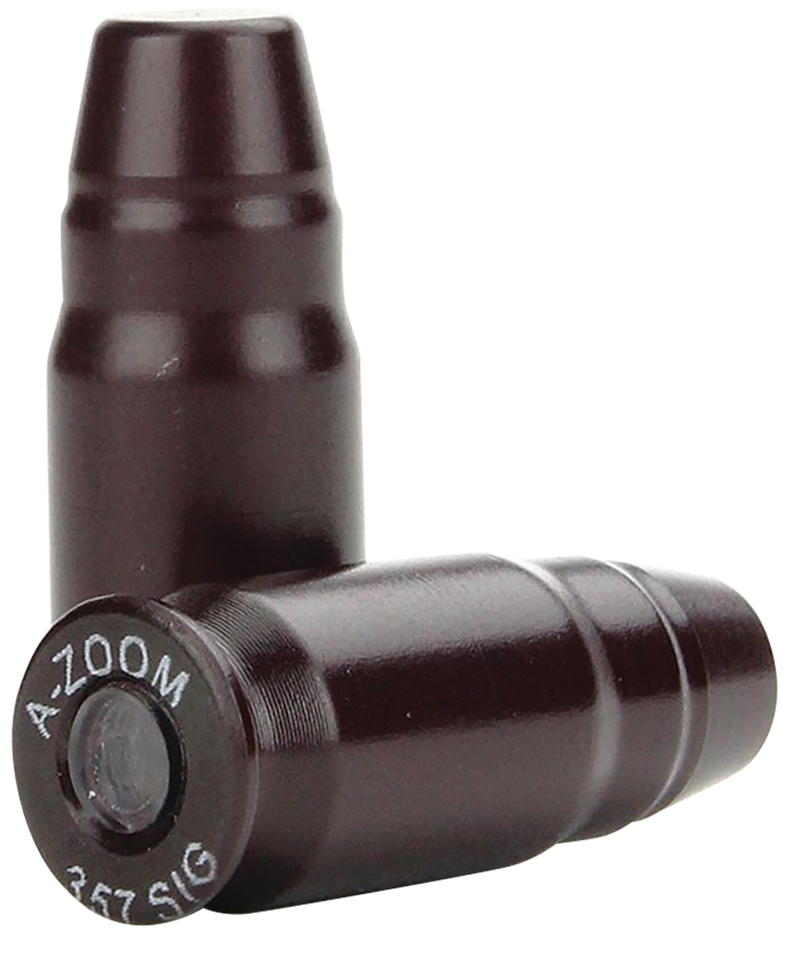 A-Zoom snap caps are dummy rounds designed for safe function testing, dry fire practice, and magazine changing drills in .357 Sig caliber. Made from tough solid aluminum construction, these non-firing training rounds eliminate unnecessary risk and are ideal for safe handling instruction and firearm cycling practice.