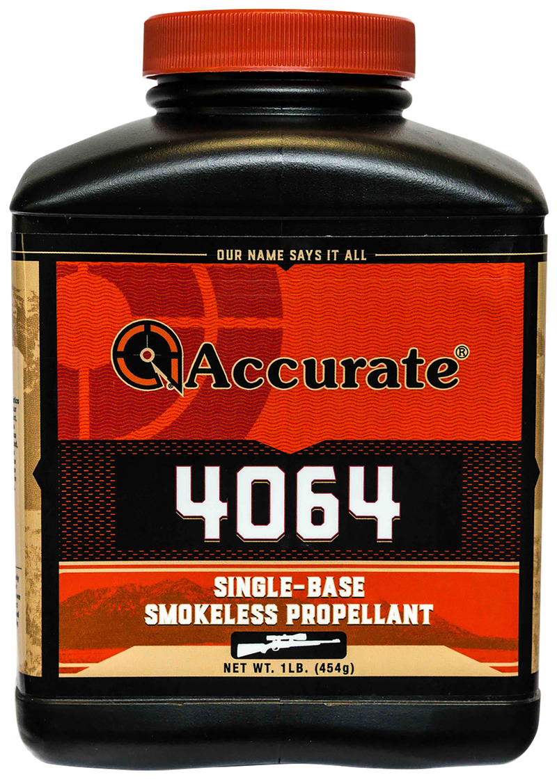Accurate 4064 is an intermediate burning single-base rifle powder designed around the .30-06 Springfield and popular with High Power shooters using the M1 Garand. This versatile powder performs well in medium rifle calibers including .22-250, .220 Swift, .243 WSM, 7x57 Mauser, and .325 WSM. Made in Canada with a bulk density of 0.919 g/cc.