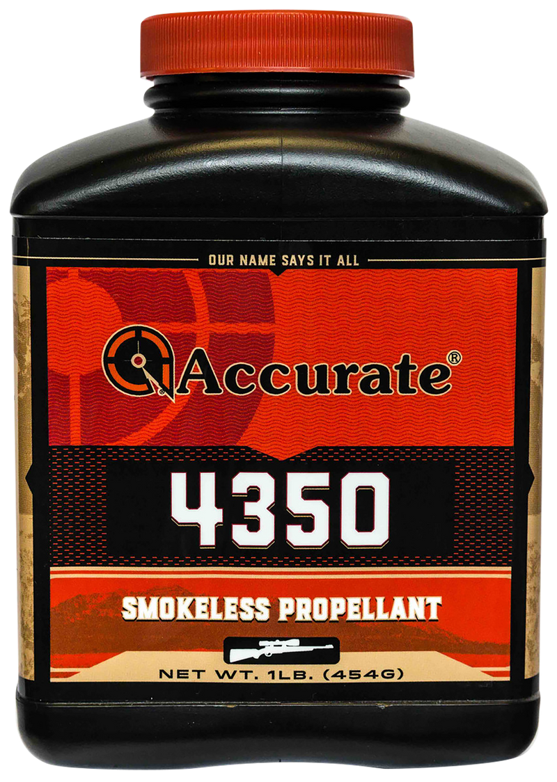 Accurate 4350 is a slow-burn, single-base extruded rifle powder suitable for medium rifle cartridges ranging from .243 Winchester to .338 Winchester Magnum. This short-cut powder meters accurately for consistent shot-to-shot performance and is particularly effective in 6mm Rem, .270 Win, .280 Rem, and .300 WSM applications. Made in Canada with a bulk density of approximately 0.922 g/cc.