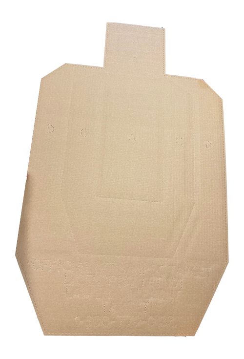 Official USPSA/IPSC practice paper target measuring 23" x 35" with black and white design for competition training. Includes 100 targets per box with hanging mount capability. Suitable for both practice and official competition use.