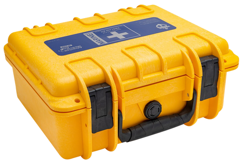 The Marine 450 is a waterproof and dust-proof first aid kit designed to treat injuries and illnesses in outdoor and marine environments. It features a compact size of 4.5 x 10.5 x 7.0 inches, making it portable for hunting, camping, and water-based activities. The kit contains 450 treatments and is housed in a durable blue case built to withstand harsh conditions.