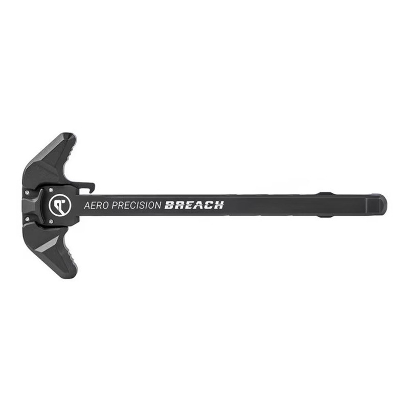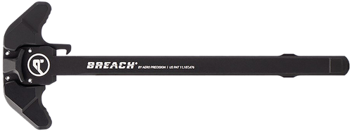 The Aero Precision BREACH is an ambidextrous charging handle designed for AR-15 platforms, manufactured from reinforced 7075-T6 aluminum with a patent-pending dual spring system. The large lever design and gas deflection shelf allow for one-sided charging technique without compromising durability. Features anodized black finish for corrosion resistance.