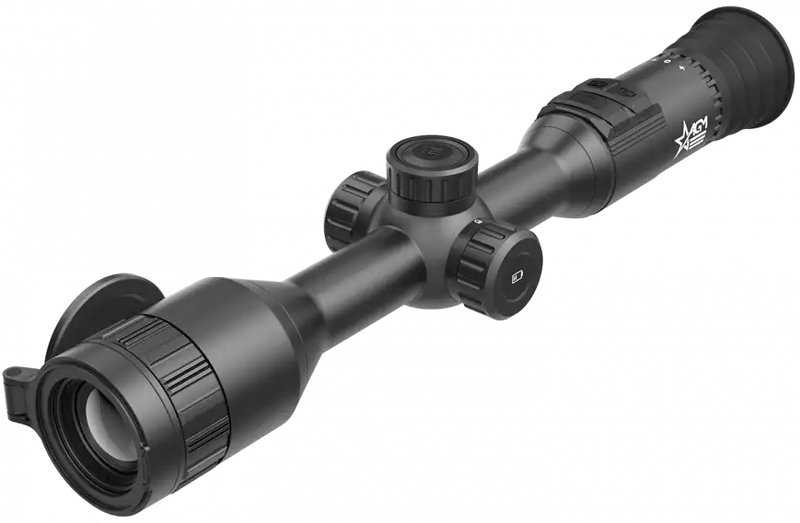 The AGM Adder V2 is a 4-16x magnification thermal rifle scope with a 35mm objective lens and 384x288 sensor resolution, delivering superior thermal imaging performance. Features a 30mm tube diameter, multiple reticle options, 45mm eye relief, and a 12µm high-sensitivity detector with 50Hz refresh rate. Includes on-board video and audio recording, multiple thermal imaging palettes, and operates for approximately 9 hours on rechargeable 18650 Li-ion batteries.
