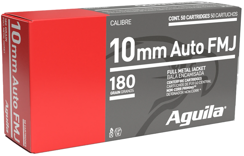 Aguila 10mm Auto 180gr Full Metal Jacket Handgun Ammunition, 50 Round Box - 1E102110