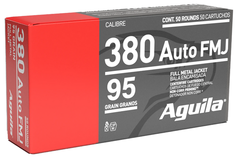 Aguila 380 ACP 95gr Full Metal Jacket Handgun Ammo, 50rd Box - 1E802110