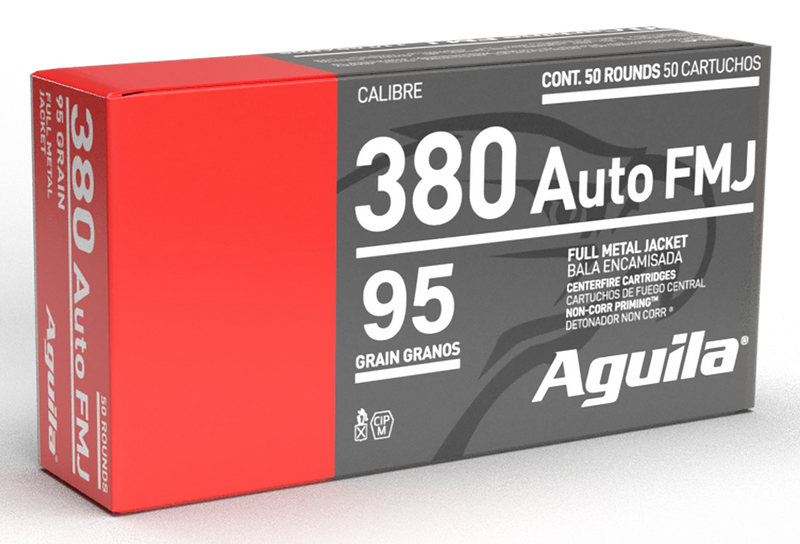 Aguila .380 ACP 95gr Full Metal Jacket Handgun Ammunition, 50 Rounds - 1E802380