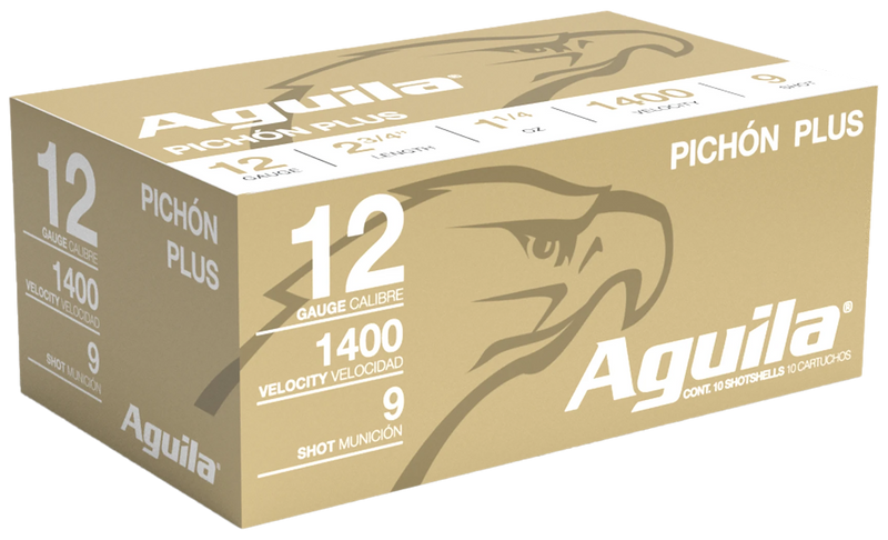 Aguila Pichon Plus shotshells are engineered for live bird hunting and competition shooting in 12 gauge with a 2.75" shell loaded with 1 1/4 oz of #9 lead shot. These high-velocity rounds achieve 1400 fps for consistent patterns at greater distances. The plastic casing and high brass construction provide reliable performance for hunting applications.