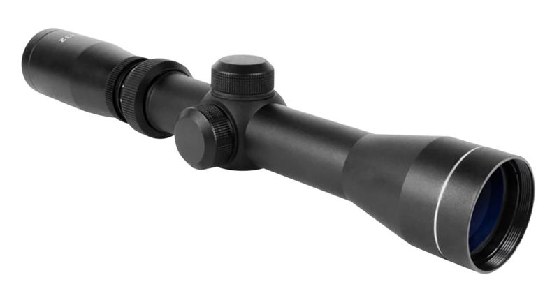 The Aim Sports Scout is a 2-7x magnification riflescope with a 32mm objective lens and Duplex reticle designed for versatile hunting and sport shooting. Features blue fused multi-coated optics, fog-proof and shock-proof construction, and 8.5-10.5 inches of eye relief. Weighs 9 ounces with dimensions of 12.2" length.