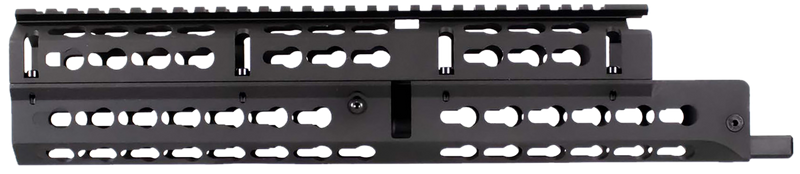 The Aim Sports MKAK04 is a Russian-style handguard designed for AK-47 platforms, measuring 13.40" in length with Keymod mounting slots for accessories. Constructed from 6061-T6 aluminum with a black anodized finish, this handguard provides a lightweight upgrade while maintaining durability and corrosion resistance.