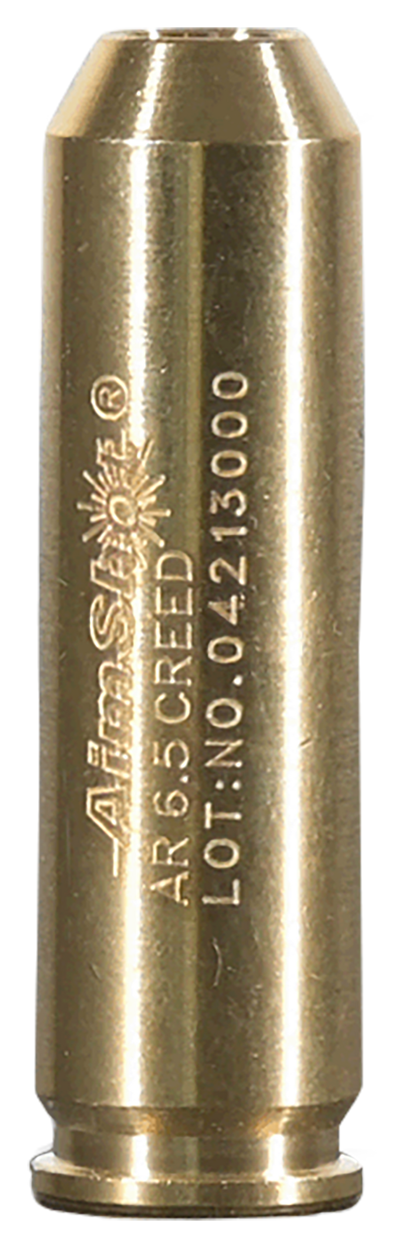 This AimShot arbor adapter is designed for use with AimShot and SpeedAim bore sights in 6.5 Creedmoor caliber. Constructed from brass, it mounts to compatible bore sight systems to align your rifle scope to the bore. The arbor style design allows for quick chamber alignment for zeroing purposes.