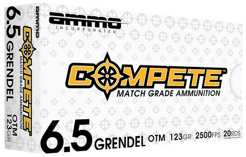 Alexander Arms Lapua Scenar ammunition in 6.5 Grendel features 123 grain boat tail open tip match bullets designed for precision target shooting. This centerfire rifle ammunition delivers 2480 fps muzzle velocity and 1680 ft-lbs of energy from quality brass casings. Packaged 20 rounds per box with 10 boxes per case.