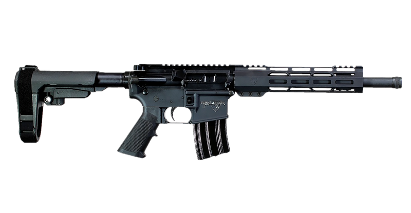 The Alexander Arms Highlander is a 50 Beowulf semi-automatic pistol with a 12" black fluted threaded barrel and 7+1 capacity. It features a black anodized Picatinny rail receiver, SB Tactical SBA3 brace, and black Ergo grip, weighing 8 lbs. This specialty combo is purpose-built for the 50 Beowulf cartridge with no integrated sights.