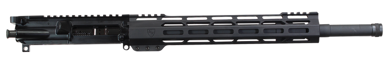 Complete AR-15 upper receiver assembly in 50 Beowulf caliber with a 16" barrel and 1:20" twist rate. Features a black cerakote aluminum receiver, M-LOK handguard, and includes a thread protector. This is a drop-in upper compatible with standard AR-15 lower receivers.