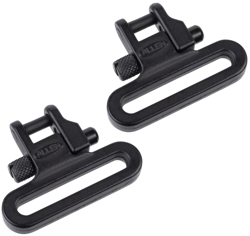 This Allen Company swivel set features a 1" loop size and is constructed from black steel for durability and corrosion resistance. Designed for use with rifle slings and firearm accessories, it provides reliable 360-degree rotation for sling attachment points. The magnum model is built to handle the weight and stress of hunting and tactical applications.