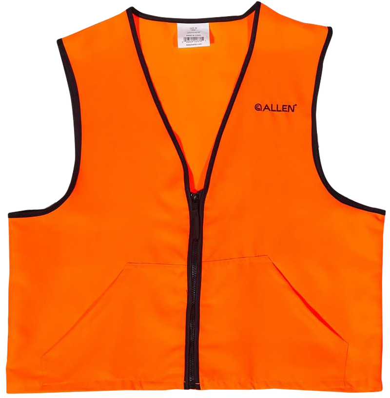 The Allen Deluxe Hunting Vest is an orange polyester vest designed for hunters who need visibility in the field. It features a zipper closure and two front pockets for convenient storage. Available in medium size with dimensions of 11.4" x 5.1" x 1.7".