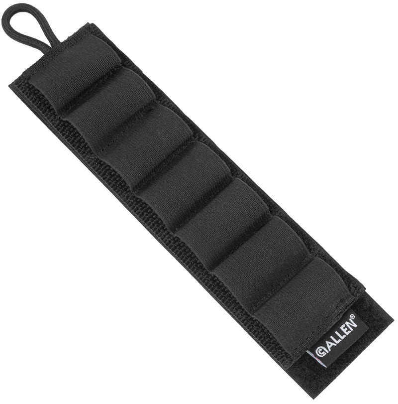 The Allen Ammo Card is a Velcro-mount ammunition carrier designed to hold 7 rounds of 12 gauge shotgun shells. Constructed from durable Endura material, it measures 9.1" x 2.7" x 0.8" and can be quickly attached to tactical gear or clothing with its integrated Velcro backing.