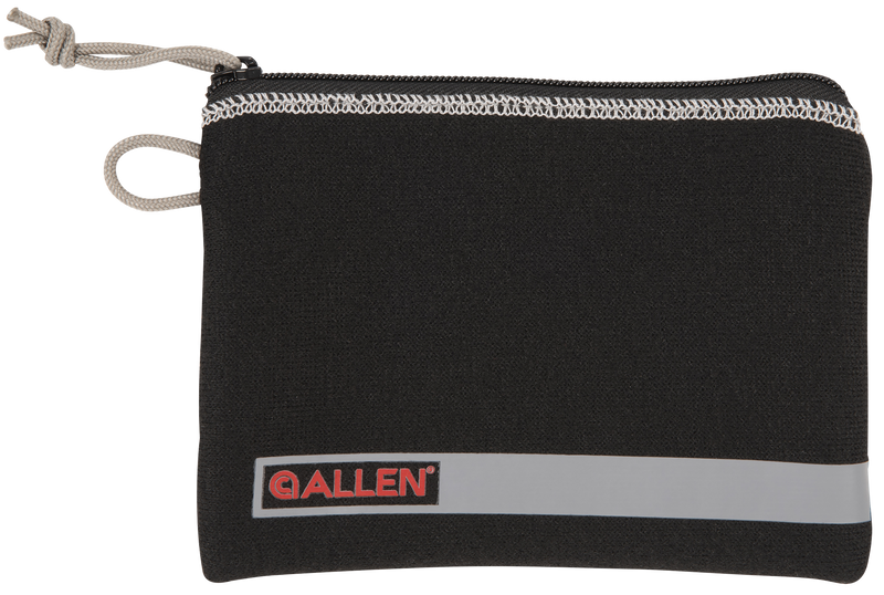 The Allen Company lockable handgun storage pouch is designed to securely hold compact firearms up to 7 inches in length. Features cushioned fleece lining for protection, lockable zippers for security, and includes a writeable ID label for personalization. Interior dimensions are 5" L x 7" W with polyester construction.