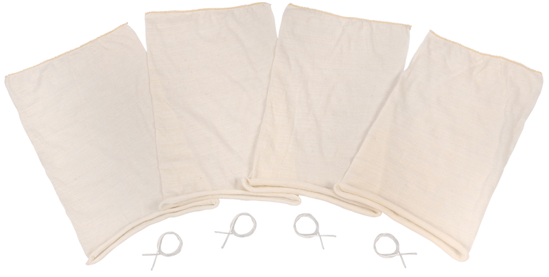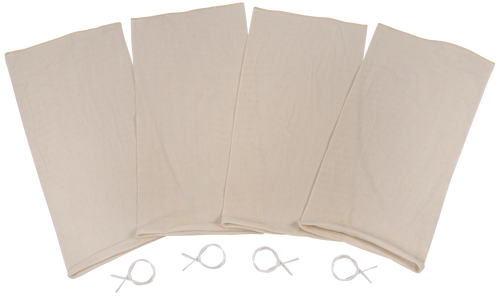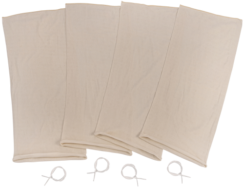 Pack of 4 game bags designed for quartering and storing deer during field dressing and transport. Made from a natural cotton blend material measuring 20" L x 14" W, these bags help protect meat from contamination and insects. Ideal for hunters processing game in the field.
