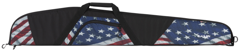 The Allen Centennial is a 52-inch shotgun case constructed from durable Endura material with foam padding for protection. Features a locking zipper for security and accommodates standard shotguns. Available in Victory Stars & Stripes and Black color scheme.