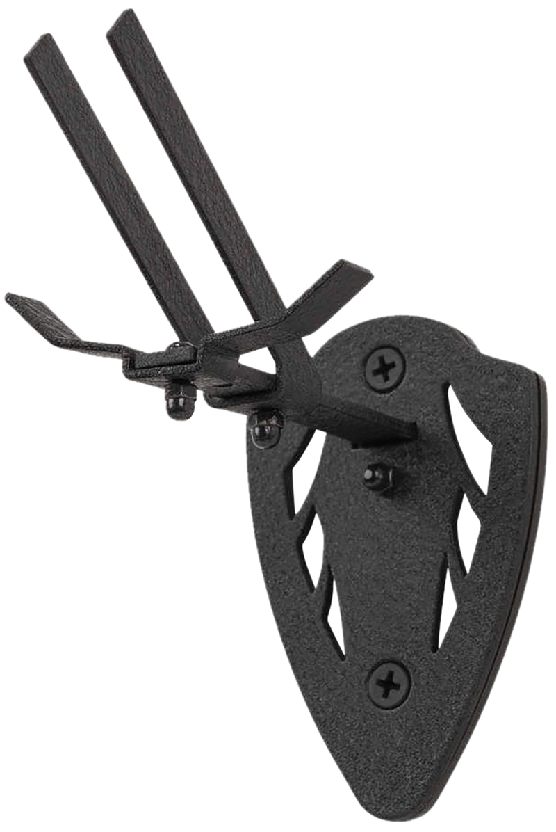 Wall-mounted skull hanger designed for displaying small to mid-size game trophies. Constructed of black steel with dimensions of 15.8" L x 7.3" W x 1.7" H. Includes all necessary mounting hardware for installation.