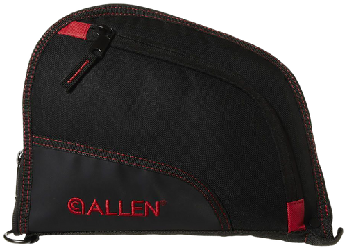 This Allen Auto-Fit 2.0 Deluxe handgun case is designed to fit most full-size semi-automatic pistols and measures 12.3" L x 8.5" W x 2.2" H. Features include foam padding, a soft knit interior, an exterior pocket, and a locking zipper for secure storage and transport.