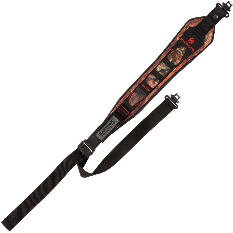 The Allen Hex sling features a durable Hypalon construction with Mossy Oak Break-Up Country camouflage pattern and includes a BAKTRAK rubber grip panel for secure handling. The sling adjusts from 21" to 42" in length with a quick-adjust cam lock buckle and hex panel design for attaching accessories. Built to be ultra-durable and lightweight for rifle use.