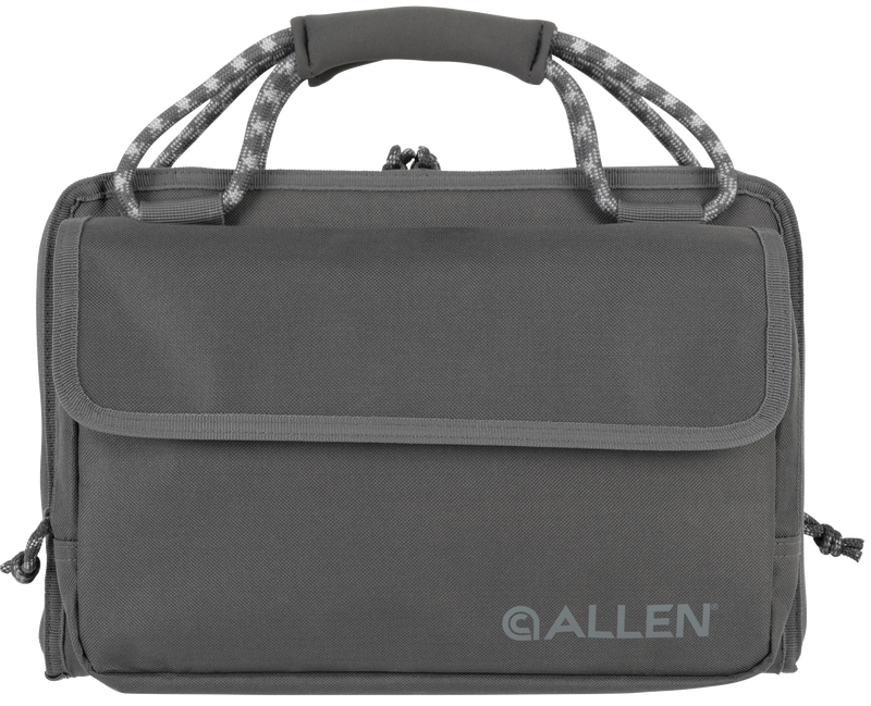 The Allen Rollins Double Handgun Case is designed to safely store and transport two handguns with interior dimensions of approximately 14" x 9.5". This gray case features a compact form factor measuring 16.1" long with a durable exterior to protect firearms during transport and storage.