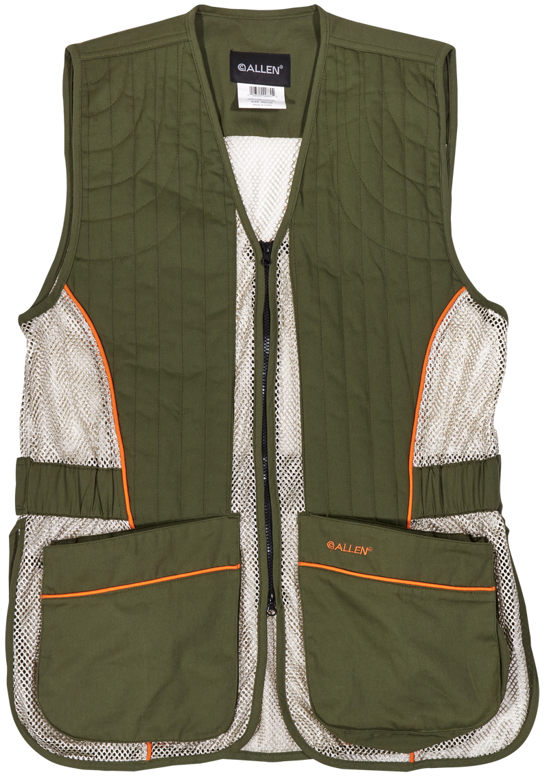 The Allen Ace Shooting Vest is designed for both left- and right-handed shooters with a padded shoulder for comfort during extended range sessions. Features include two front pouches for accessory storage, lightweight construction, and a mesh back for breathability. Available in M/L size with adjustable fit.