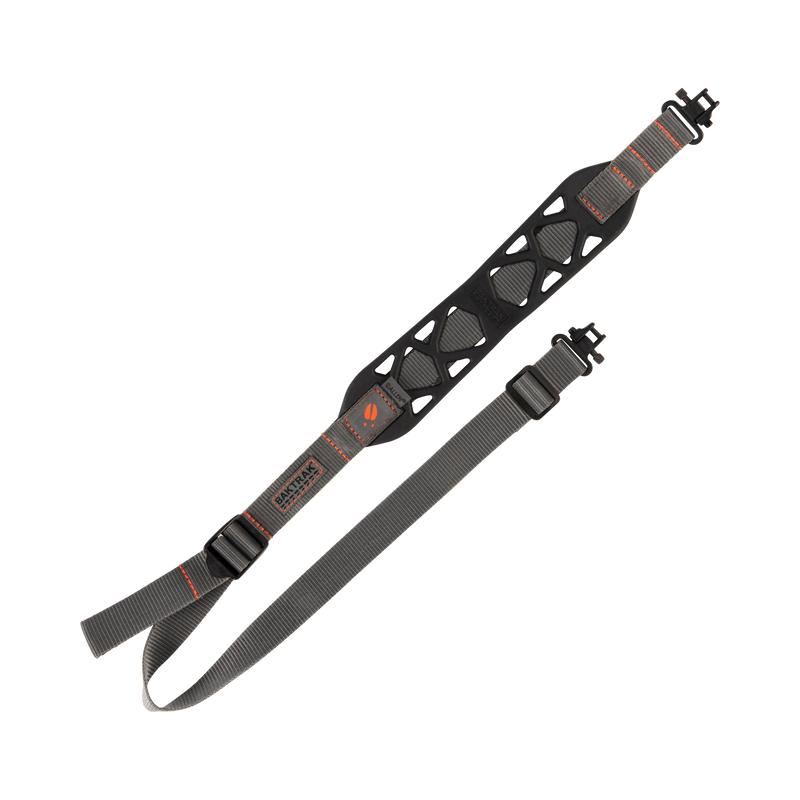 The Cirrus Ultralight is an ultra-slim rifle sling designed to minimize weight without sacrificing comfort, featuring a comfortable rubber shoulder pad that conforms to your shoulder. It includes one-handed Faston length adjustment for a customized fit and swivels rated to 500 pounds. The sling is constructed from silicone rubber with BakTrak material for reliable performance on long-distance hunts and steep terrain.