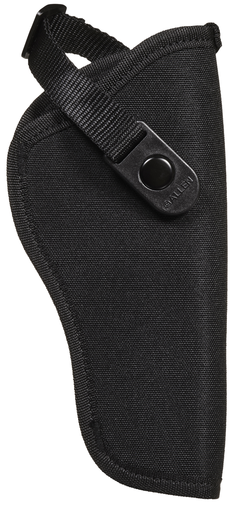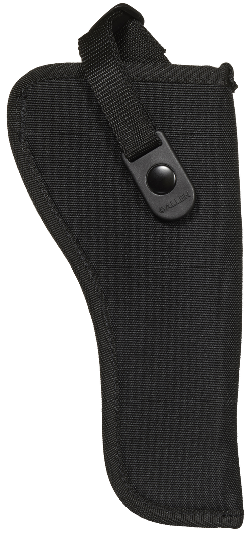 The Allen Cortez is a right-hand, outside-the-waistband holster designed to fit large-frame pistols with 4.5" to 5" barrels, including Glock 20/21. It features a molded belt loop accommodating up to 2" wide belts, snag-proof lining with web sight guard for faster draws, and an adjustable strap with easy-open snap lever for secure retention.