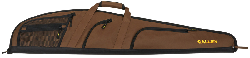 The Allen Daytona is a 52-inch shotgun case constructed from durable Endura fabric with foam padding for protection. It features four accessory pockets, an adjustable sling, full-length zipper, and polyester lining for easy cleaning.