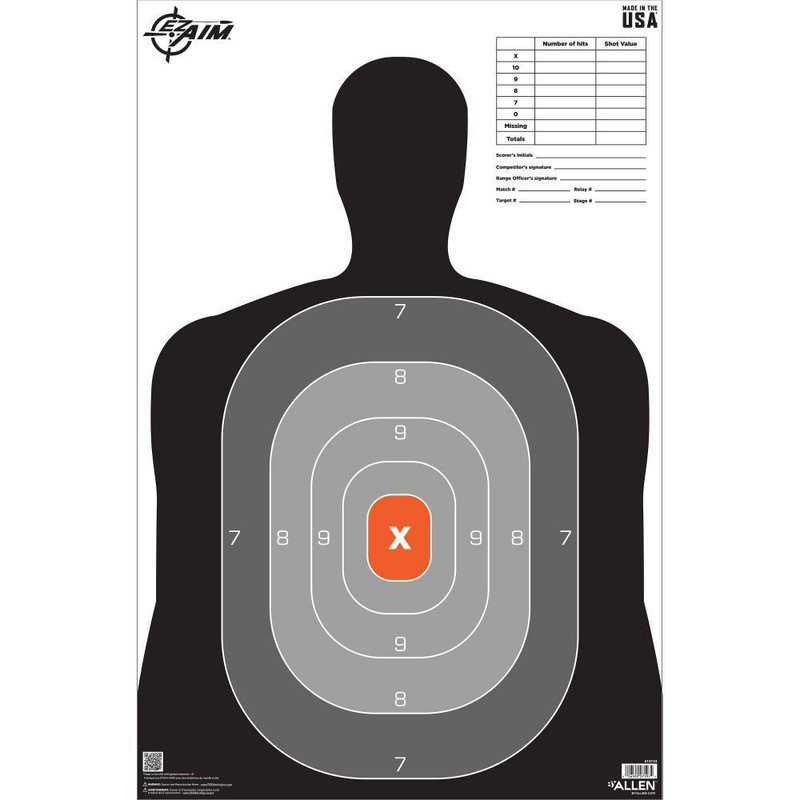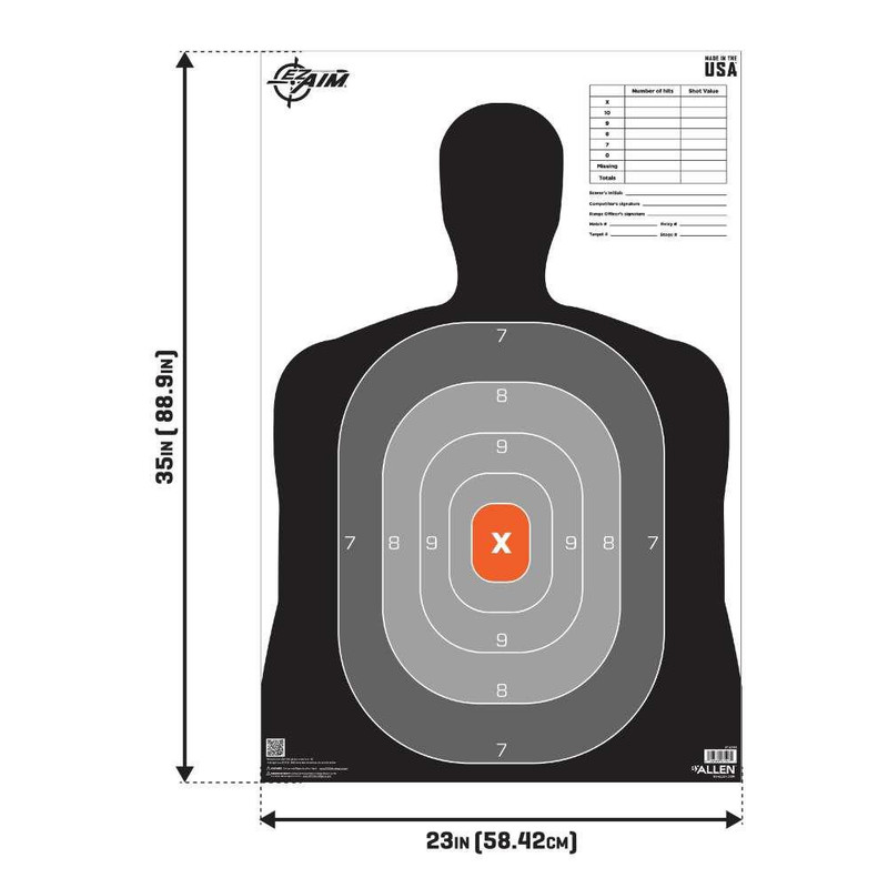 Allen EZ Aim B27 Pro Silhouette Paper Target 23" x 35" 50 Count - 15744