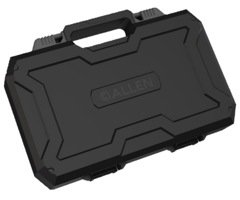 This hardshell pistol case by Allen Company features a rigid polymer shell with soft egg crate foam interior, accommodating most handguns up to 11.5 inches in overall length. The case includes a lockable design and built-in carry handle for secure transport during range trips, travel, or home storage.