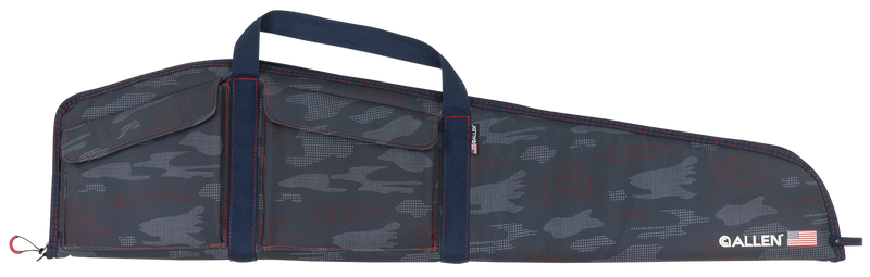 This 42-inch rifle case from Allen features a patriotic red, white, and blue custom camo pattern and is constructed with durable Endura exterior fabric and soft knit interior lining. The case includes thick foam padding for firearm protection, two flap pockets with hook and loop closures, and a lockable zipper. Designed and made in the USA.