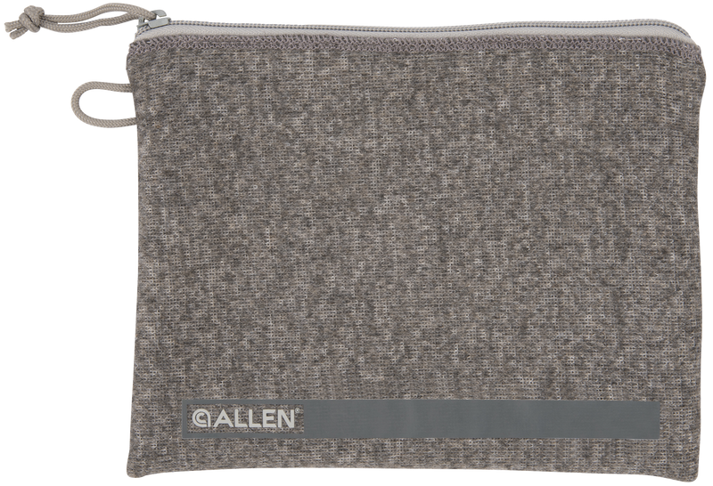 The Allen Company lockable handgun storage pouch is designed to securely hold full-size pistols measuring 7 to 9 inches. Features cushioned fleece lining for protection, easy-to-use lockable zippers for security, and an ID label for personalization.