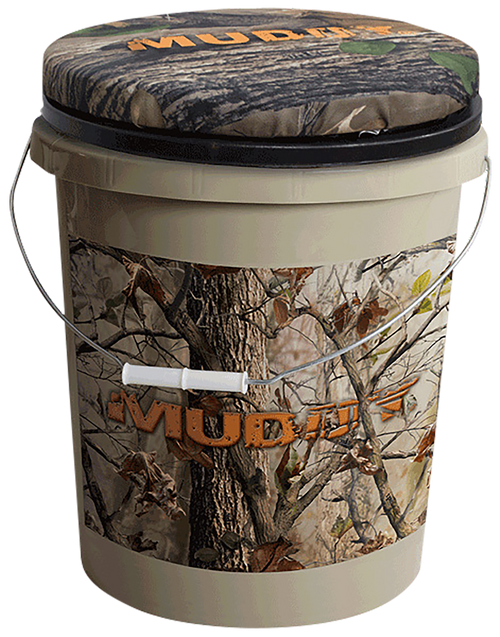 A 360-degree rotating bucket lid seat with soft foam padding designed for comfort during hunting trips. Fits standard 4, 5, and 6-gallon plastic buckets and weighs 8.8 oz. Made in the USA.