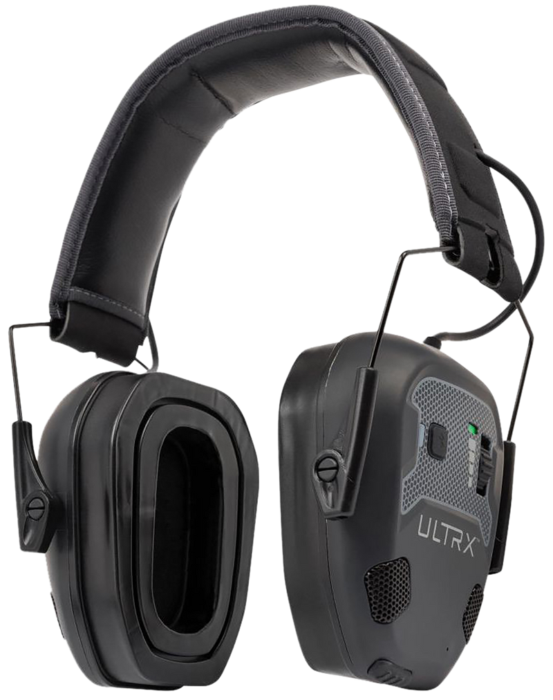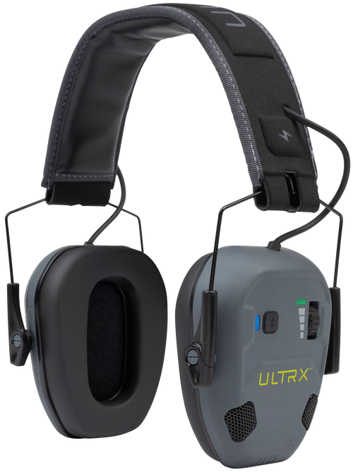 Electronic earmuff with 22 dB noise reduction rating and Bluetooth connectivity for audio streaming and communication. Features dynamic wave compression system with 6x omni-hearing boost and air-gel cooling technology for extended wear comfort.