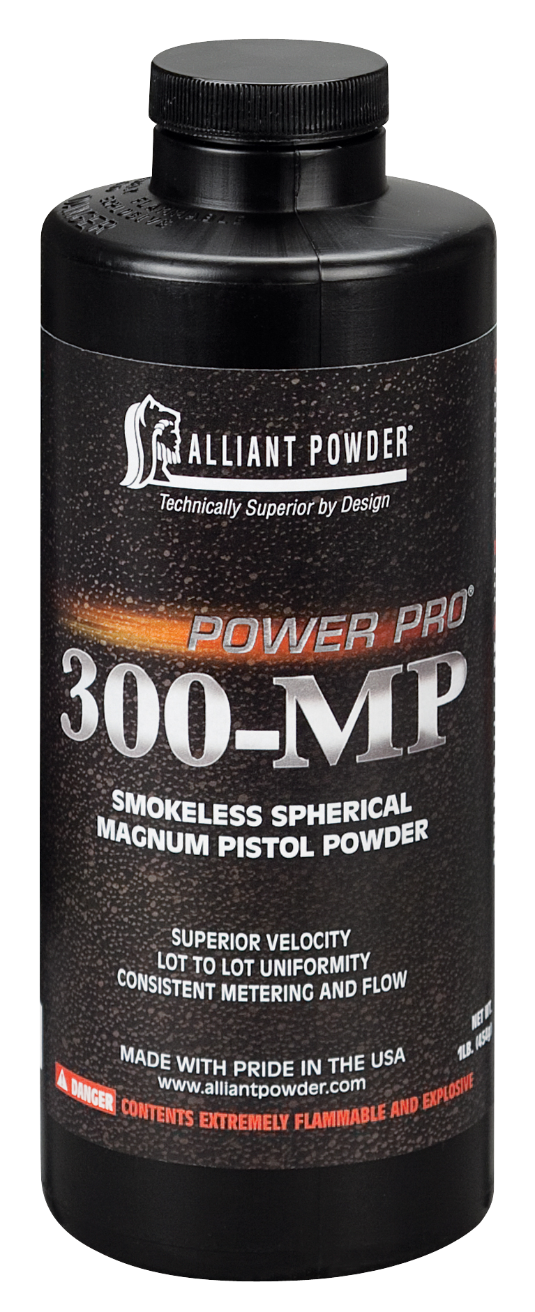 Alliant Power Pro 300-MP is a spherical smokeless powder specifically formulated for magnum pistol calibers, delivering excellent uniformity and velocity. Manufactured to high standards with consistent grain size and density, this powder is easier to meter and provides reliable performance for magnum handgun loads. Each container holds 1 pound and is subject to hazmat shipping restrictions.
