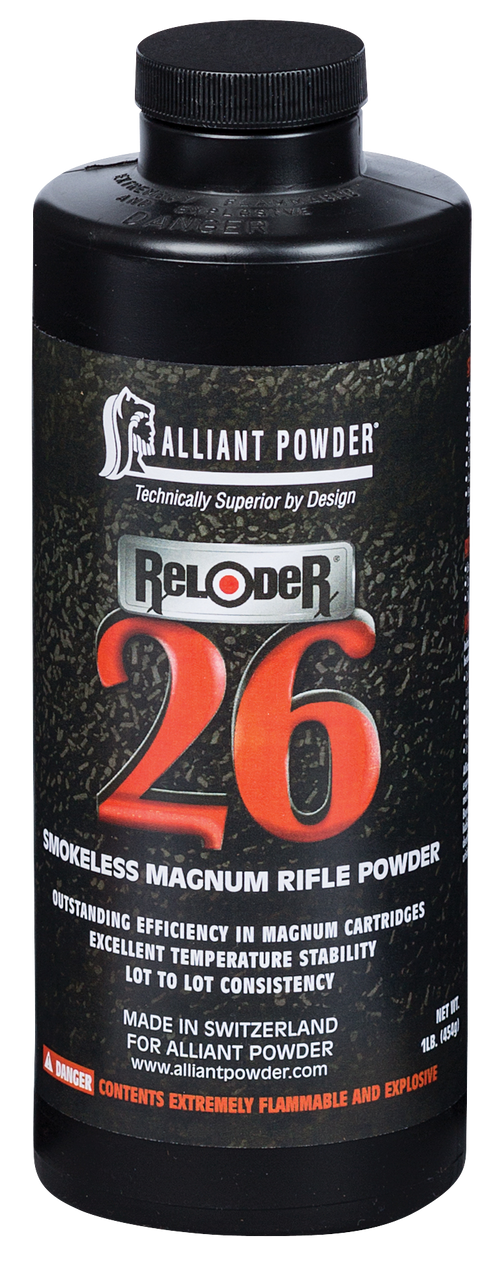 Alliant Reloder 33 is a double-base rifle powder specifically formulated for long-range magnum cartridges, with primary application to the .338 Lapua. The powder provides consistent performance across temperature and humidity variations and meters well for precise reloading. It is suitable for a range of large magnum rifle calibers.