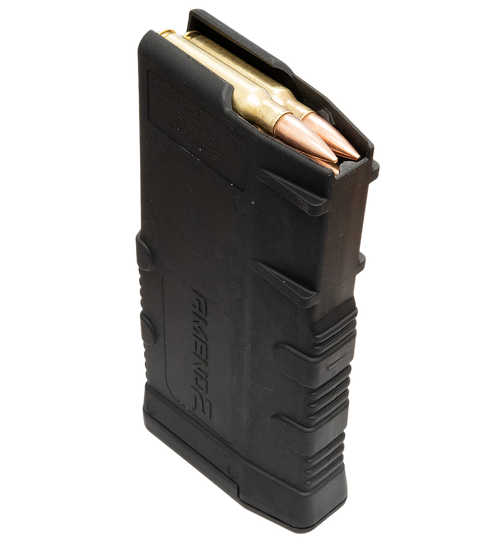 The Amend2 SR-25 Mod-A is a 20-round rifle magazine chambered in 7.62x51 NATO (.308 Win) for AR-10 and SR-25 pattern rifles. Constructed from fiberglass-reinforced nylon, it provides impact resistance, stiffness, and improved temperature resistance with reduced feed lip spread for reliable feeding in demanding environments.