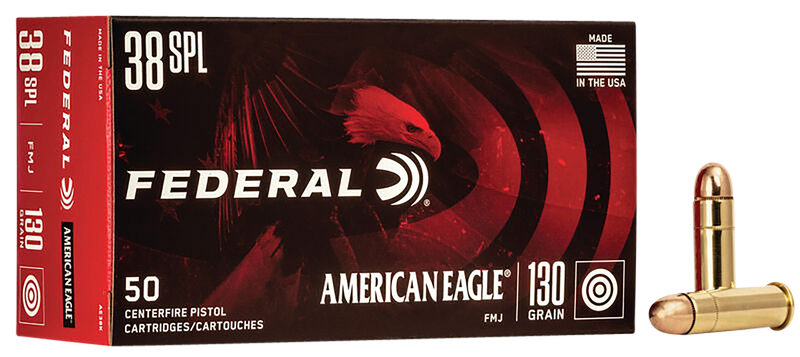 Federal American Eagle 38 Special 130gr FMJ Handgun Ammunition 50/Box - AE38K
